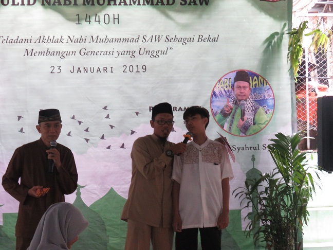 “Pemimpin kita yang satu ini bukanlah manusia biasa pada umumnya. Beliau adalah manusia yang sangat istimewa. Salah satu keistimewaan beliau adalah hari lahirnya yang diperingati oleh jutaan manusia di seluruh dunia”. “Dengan adanya peringatan Maulid Nabi kali ini diharapkan dapat meningkatkan rasa cinta kepada Nabi Muhammad SAW dan meneladani jiwa kepemimpinan yang dimilikinya”, tutupnya Ustadz.